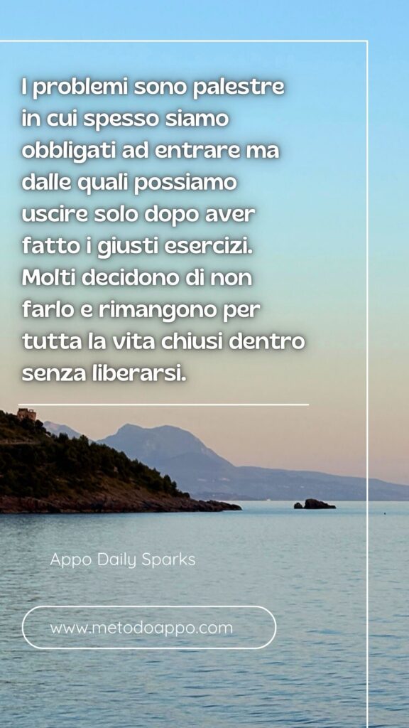 I problemi sono palestre in cui spesso siamo obbligati ad entrare ma dalle quali possiamo uscire solo dopo aver fatto i giusti esercizi. Molti decidono di non farlo e rimangono per tutta la vita chiusi dentro senza liberarsi.